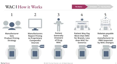 Because WAC and Average Wholesale Price (AWP) generally move in parallel, shifts in WAC can have broad downstream effects. Those systemwide impacts are explored more fully in the AWP discussion. From a WAC-specific perspective, the most direct effect is typically seen in rebate calculations, since many rebate agreements are structured as a percentage of WAC.