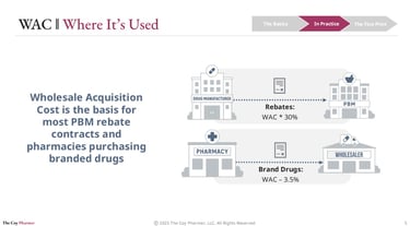 Wholesale Acquisition Cost is deeply embedded in manufacturer, PBM, and plan sponsor contracting. Many rebate agreements between manufacturers and PBMs are structured as a percentage of WAC, making WAC the baseline from which rebate dollars are calculated. This structure plays a central role in determining the net cost of brand drugs for plan sponsors.