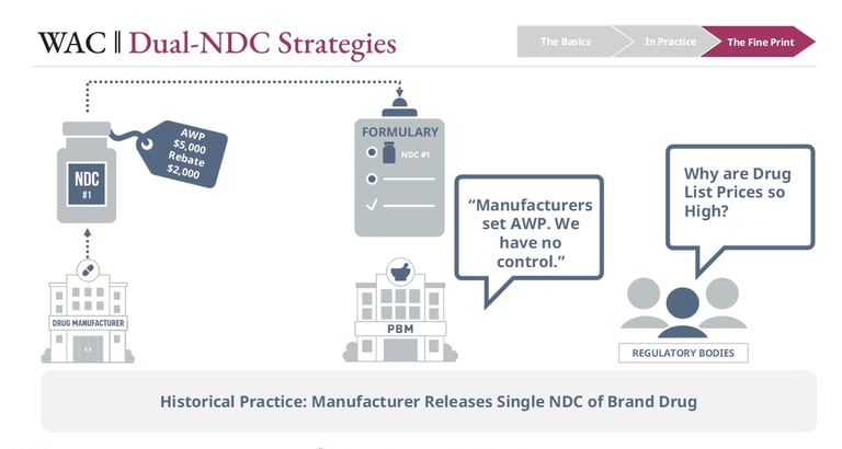 Regulatory bodies, including the Federal Trade Commission, have increased scrutiny on manufacturer list prices in recent years. In response to this pressure, some manufacturers began releasing multiple WAC levels for a single product. This allows them to offer a lower-list-price version with reduced rebates alongside a higher-WAC version that maintains traditional rebate structures.